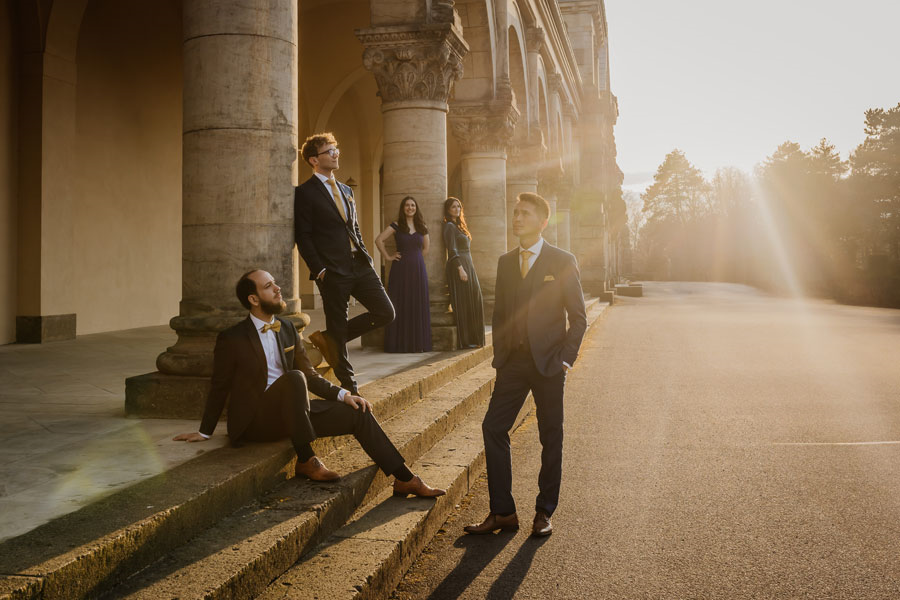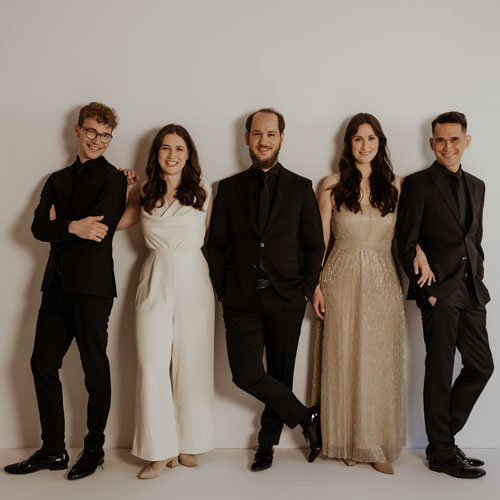 Seit 25 Jahren macht es sich das Leipziger Calmus Ensemble zur Aufgabe, klassisches Repertoire mit musikalischen Neuentdeckungen zu verknüpfen, Uraufführungen zum Klingen zu bringen und dabei die Menschen zu berühren. Für reiche Klangfarben, Homogenität, Liebe zum Detail und eine textnahe Interpretation der Musik stehen Elisabeth Mücksch (Sopran), Johanna Veit (Alt), Friedrich Bracks (Tenor), Jonathan Müller Saretz (Bariton) und Michael B. Gernert (Bass).